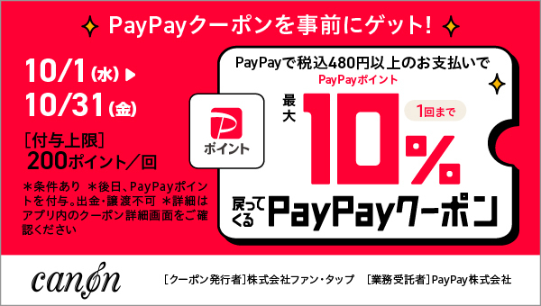 10月1日(水)から10月31日(金)まで、楽譜購入時に PayPayでお支払いの方を対象としたキャンペーン を実施いたします。