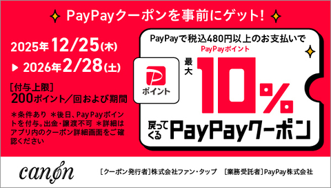 12月25日(木)から2026年2月28日(土)まで、楽譜購入時に PayPayでお支払いの方を対象としたキャンペーン を実施いたします。期間中、480円以上のお買い物で最大200ポイントのPayPayポイントが付与されるお得な内容となっております。事前にPayPayアプリ内でクーポンを取得し、決済時にPayPayをご利用いただくと、後日PayPayポイントが付与されます。